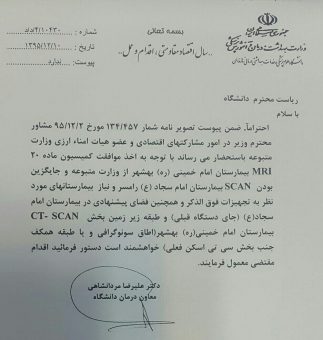 واگذاری یکدستگاه ام آر آی به بیمارستان امام (ره) بهشهر