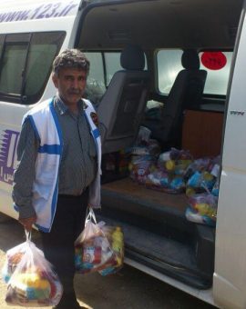 اخوان افزود: سبد غذایی که هر بسته شامل(برنج-روغن-قند-رب-ماکرونی-سویا-پنیر و…) بین مدد جویان توزیع شده است.