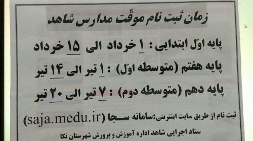 زمان ثبت نام مدارس شاهد مازندران سال تحصیلی ۹۷ – ۹۶ اعلام شد.