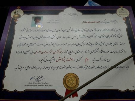 امیر حسین دوستدار و نیما نوری ازدانش آموزان موفق دبیرستان متوسطه اول شهید بهشتی (سمپاد)در جشنواره کشوری نوجوان خوارزمی محور پژوهش که در تاریخ ۲۶مرداددرمشهد مقدس برگزار شد موفق به کسب رتبه سوم شدند.