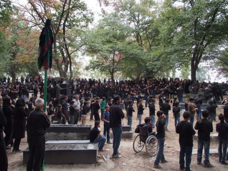 شام غریبان حسینی با حضور دستهی زنجیر زنی با شکوه جوانان این رزوستا همراه با حضور مردم عزادار در کنار قبور مطهر شهدا و اموات