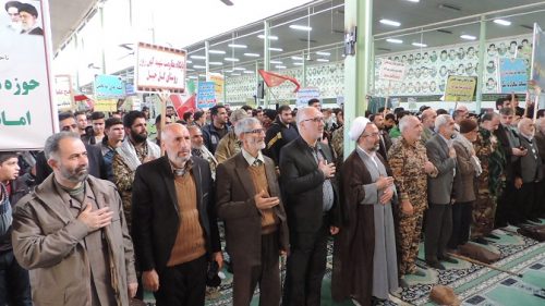 همزمان با سالروز تشکیل ارتش بیست میلیونی به فرمان تاریخی حضرت امام خمینی درسال ۵۷ ،صبح امروز اجتماع بزرگ بسیجیان از اقشار مختلف جامعه در مصلی امام خمینی این شهرستان بار دیگر قدرت اقتدار با صلابت این نیروی مردمی را به نمایش گذاشتند.