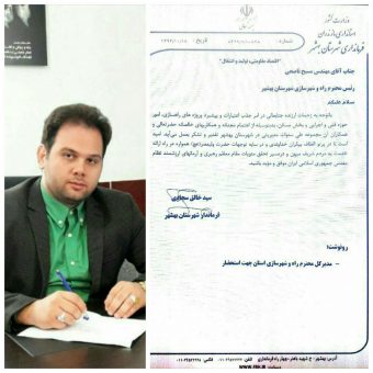 به گزارش نیکا خبر سید خالق سجادی در نامه جدا گانه به پاس اهتمام مجدانه و همکاریهای خالصانه مهندس مسیح ناصحی و همکاران مجموعه اداره راه بهشهر قدردانی نمود .
