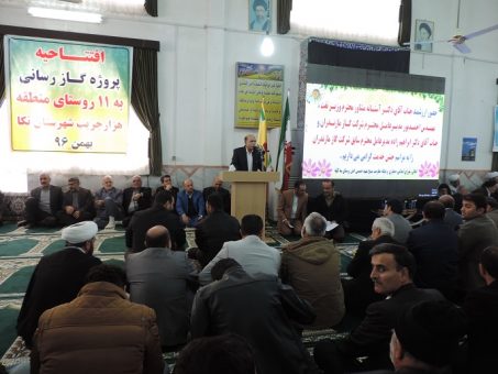 آئین گاز رسانی ۱۱ روستای شهرستان نکا با امامان جمعه نکا و بهشهر ،حضور مشاور وزیر نفت ، استاندار مازندران ، نماینده مردم شرق مازندران ،مدیرعامل شرکت گاز مازندران، ر وسای ادارات شرق مازندران در روستای سه کلیه نکا برگزار شد .