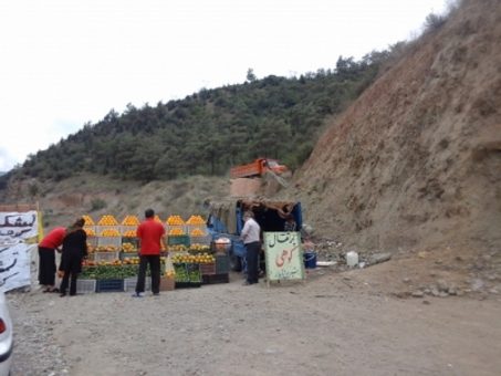 ایوب علیزاده یکی از فروشندگان پرتقال به اصطلاح کوهی است که بساط خود را در کنار جاده هراز برای رهگذران و مسافران این جاده باز کرده است.