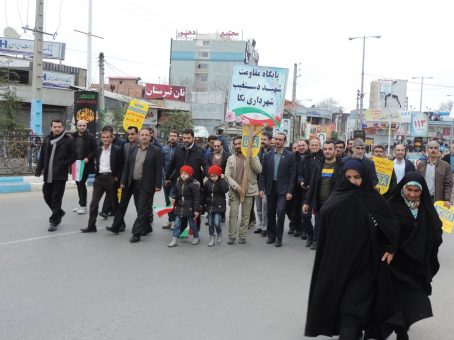 مردم وفاداربه انقلاب شهرستان نکا،همپای دیگرهموطنان ما،درچهلمین سالگرد پیروزی انقلاب اسلامی با شرکت راهپیمایی باشکوه یومالله ۲۲ بهمن؛ همدل و یکصدا فریاد مرگ بر آمریکا سردادند .