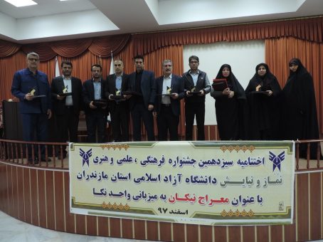رئیس دانشگاه آزاد اسلامی مازندران از اختتامیه سیزدهمین جشنواره نماز و نیایش عنوان «معراج نیکان» با حضور جمعی از مسئولان در حوزه نماز به میزبانی دانشگاه آزاد اسلامی واحد نکا. خبر داد .