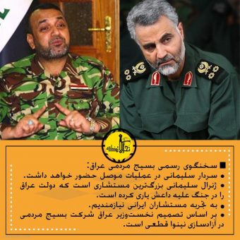 یکی از نمایندگان مجلس عراق که از دستیاران ارشد نوری المالکی هم هست، درباره سردار سلیمانی می گوید:«او فقط یکبار در این هشت ساله به عراق آمده است. او فردی است که آرام سخن می گوید و منطقی و بسیار مؤدب است. وقتی با او حرف می زنید، بسیار ساده برخورد می کند. تا زمانی که پشتوانه او را نشناسید، نمی دانید چه قدرتی دارد، هیچ کسی نمی تواند با او بجنگد.»