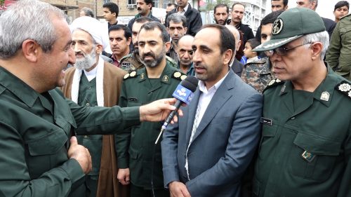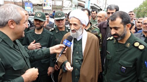 بعضی از مردم و امام جمعه شهرستان نکا امروز لباس سپاه بر تن داشتند.