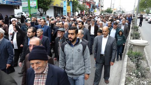 نمازگزاران نکایی پس از اقامه نماز جمعه ۲۳ فروردین با برگزاری راهپیمایی، ضمن محکومیت اقدام آمریکا در قراردادن نام سپاه در لیست گروههای تروریستی، همدلی و انسجام خود را با سپاه پاسداران نشان دادند.