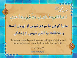 (مدارا با مردم نصف ایمان است و نرمى با آنها نصف زندگى است).