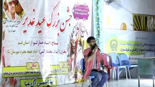 شب گذشته از سوی هیات خامس آل عبا جشن بزرگ غدیر با حضور هنرمندان صدا و سیما در مدرسه شهید اشجعی نکا برگزار شد .