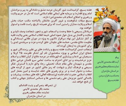 پیام نماینده مقام معظم رهبری درمازندران به مناسبت هفته بسیج