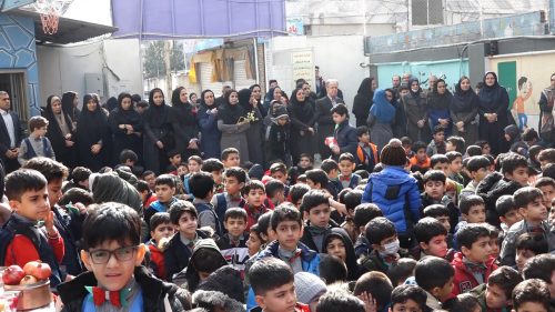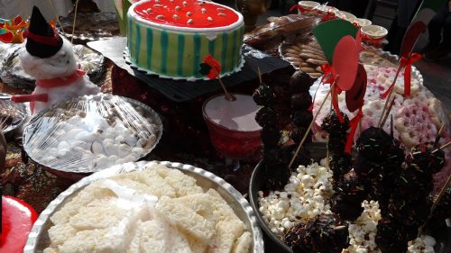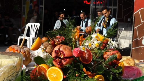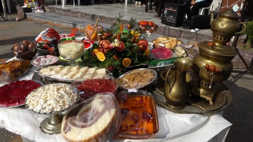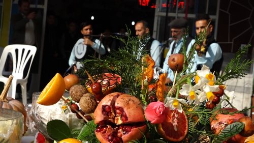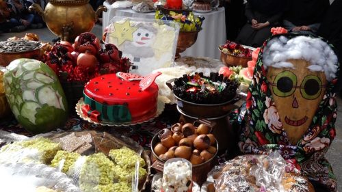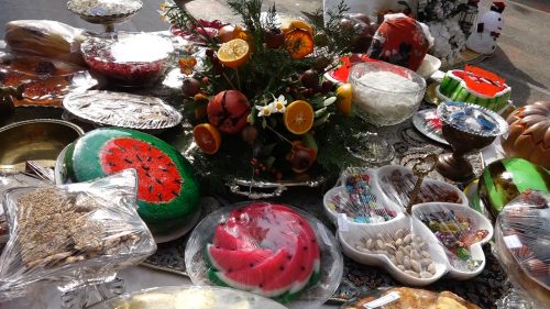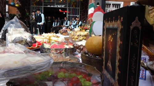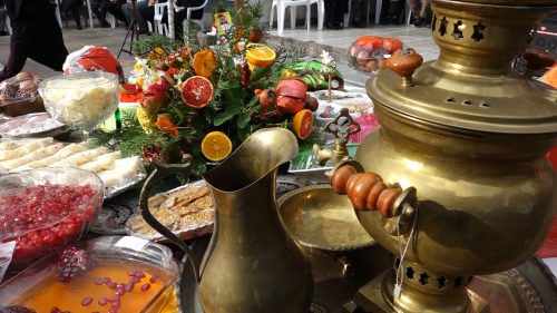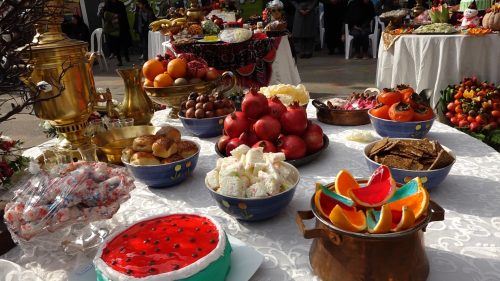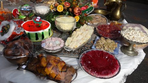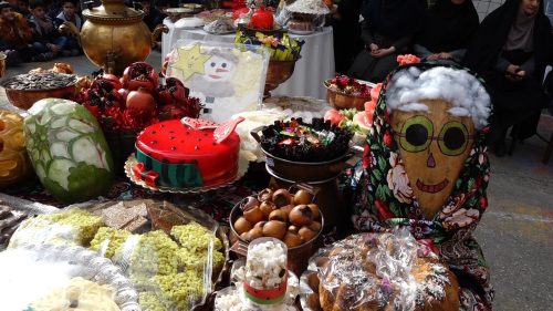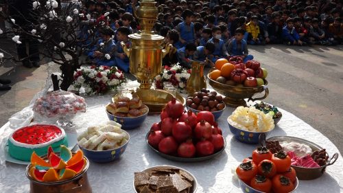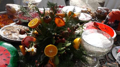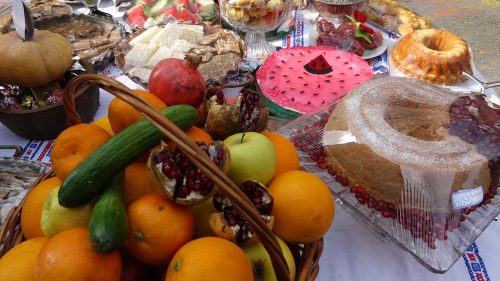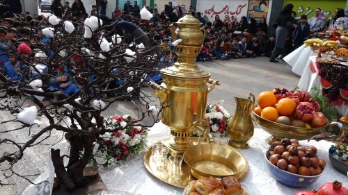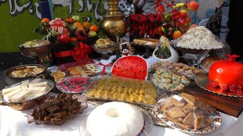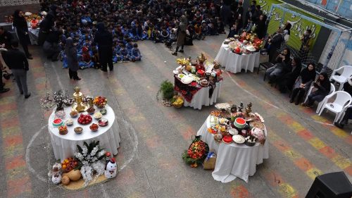 میزهای پر از غذا و شیرینیجات مختلف در این مدرسه با نشاط برای معرفی هرچه بیشتر یلدای ما ایرانیان تزیین شده اند