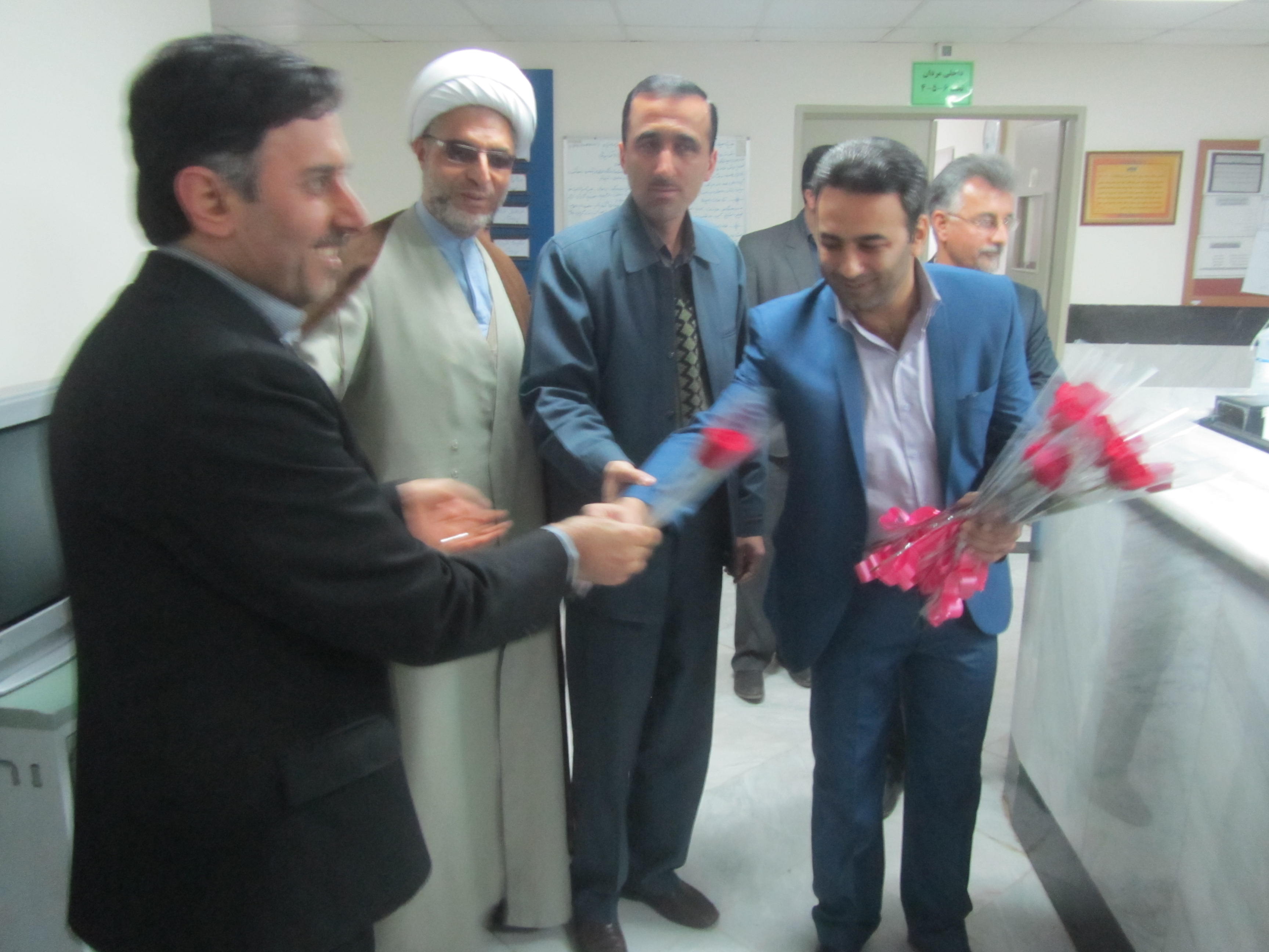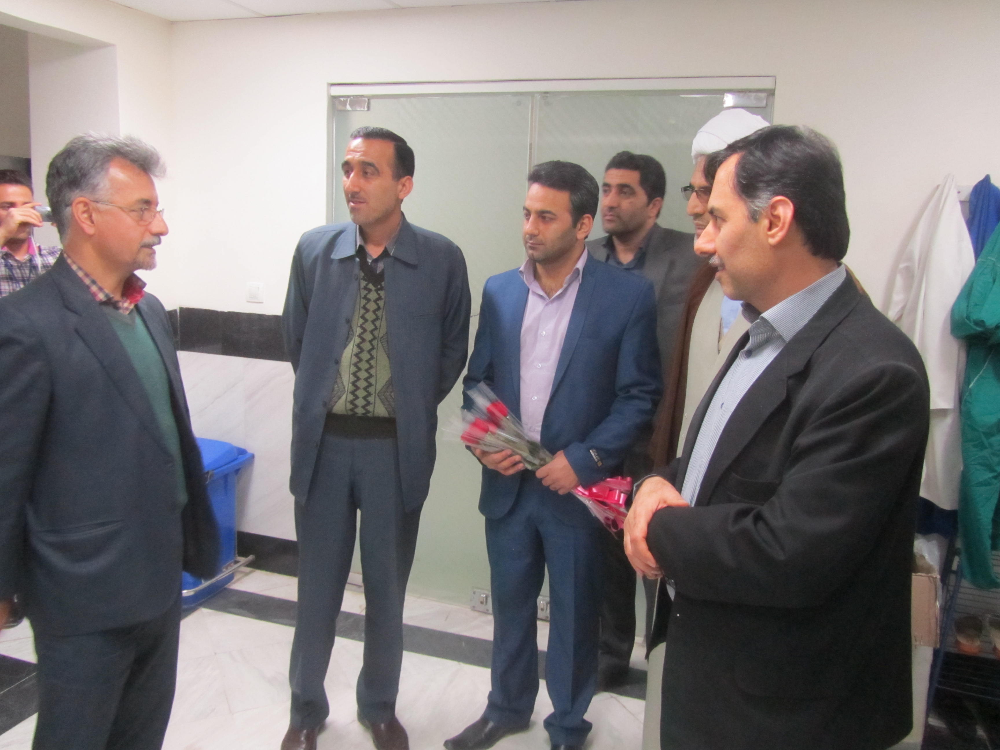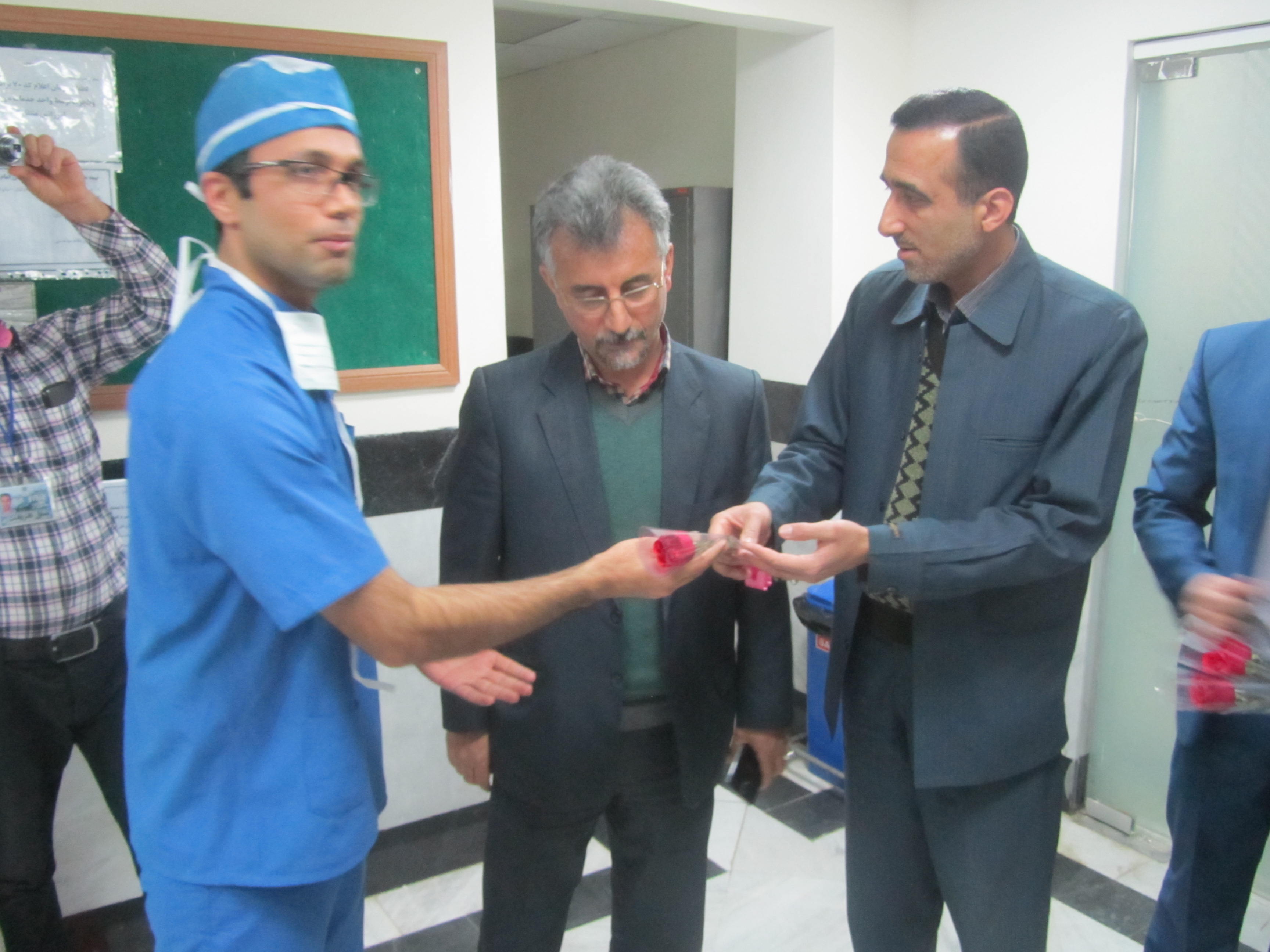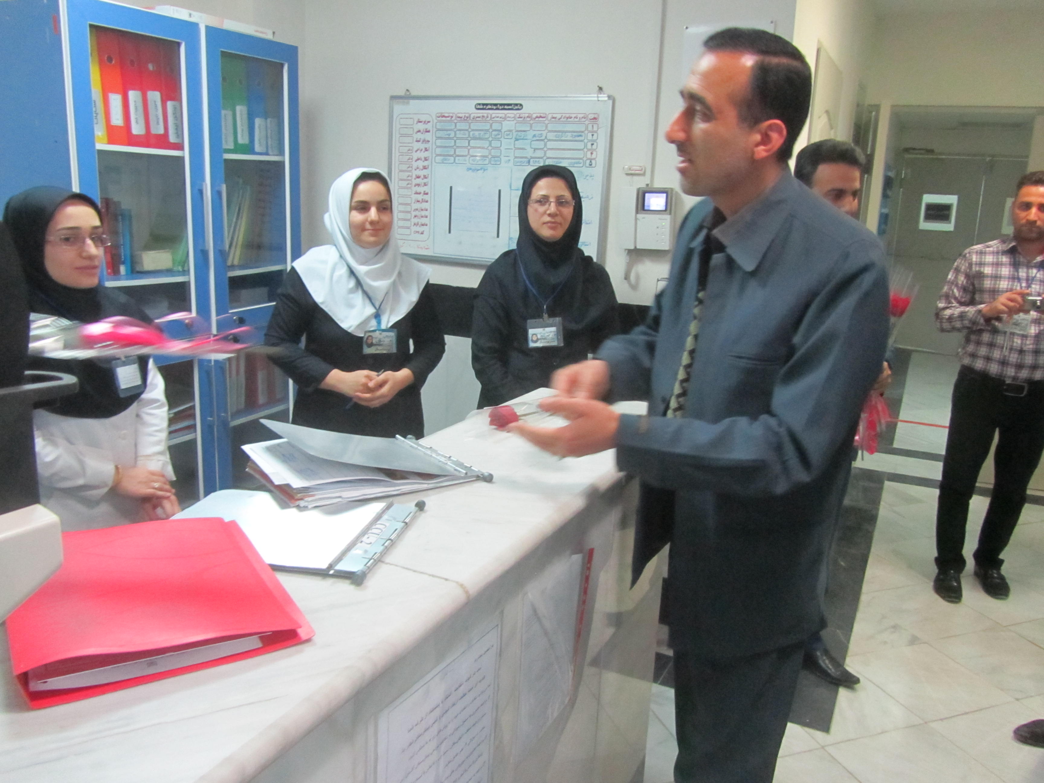 هیات همراه دکتر خانجانی دکتر برزگرنزاد ضمن حضور در بخش های مختلف این بیمارستان با اهدایی شاخه گل از زحمات پرستاران تقدیر کرد.