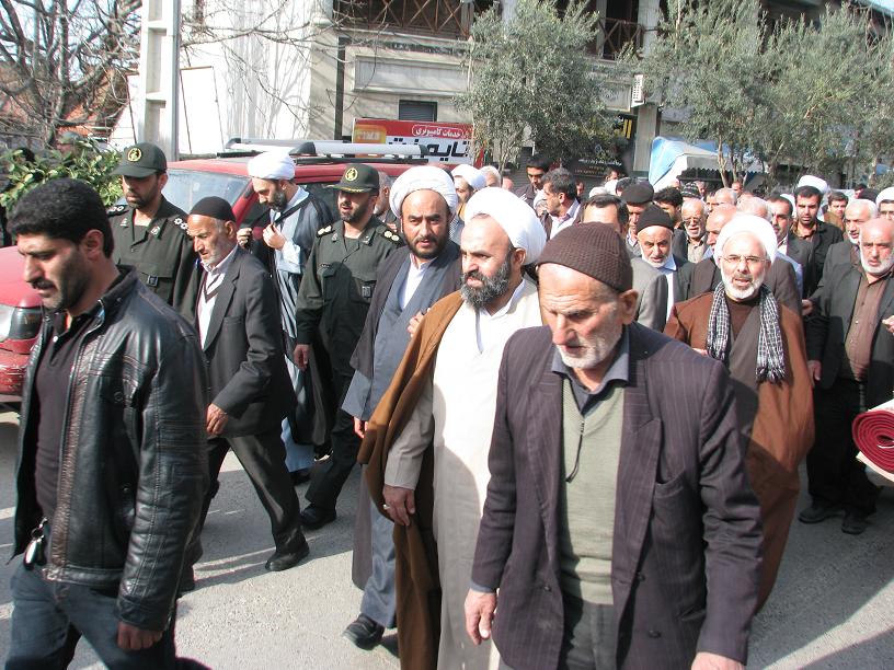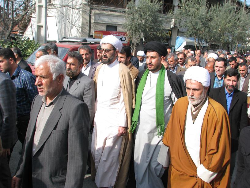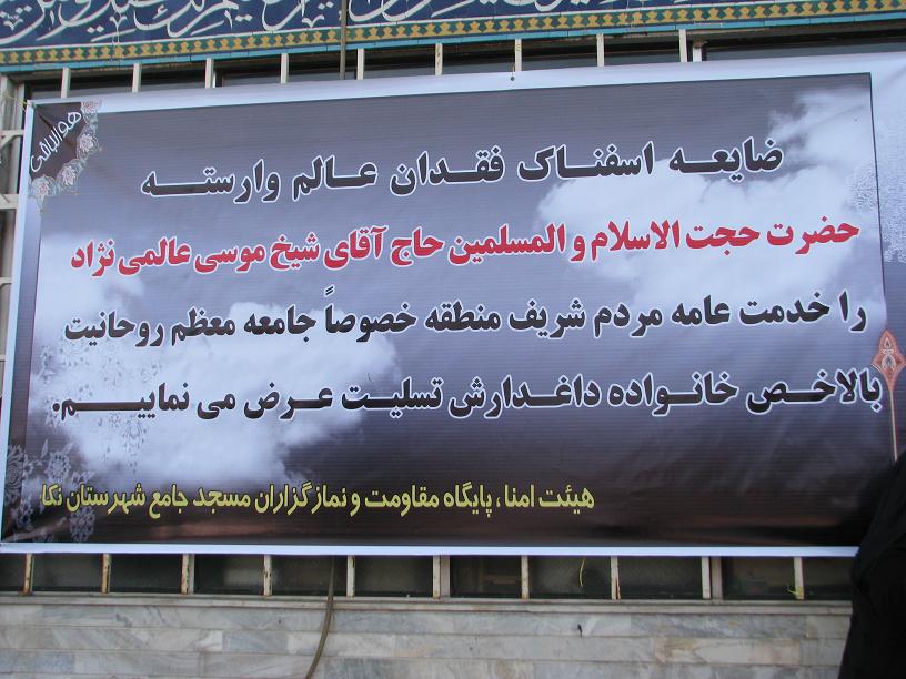 به گزارش نیوزنکا:مردم ولایت مدارو دوستدارشاگردان مکتب فقه جعفری با حضور در مراسم تشییع پیکر حجت الاسلام موسی عالمی نژادضمن میثاق با آرمانهای مکتب تشیع باردیگر بیعت و وفاداری خود را به علمای شیعه اعلام داشتند. و پس از اقامه نماز برپیکر آن فقیدسعید از مسجد جامع تا گلزارشهدای نکا تشیع نمودند.