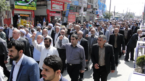 مردم مومن و خدا جوي نكا در ادامه با فریاد زدن شعار رژیم آلسعود مزدور قوم یهود تاکید کردند که آلسعود با حمله به یمن در برابر اسلام قرار گرفت و مانند قوم یهود به نسلکشی در یمن مشغول است.