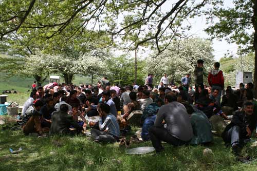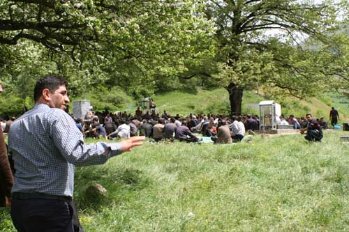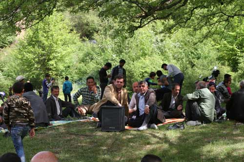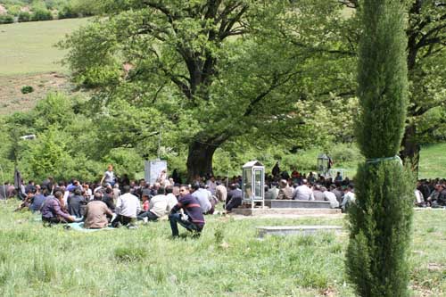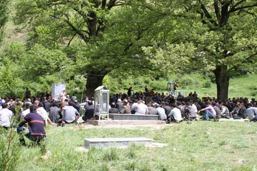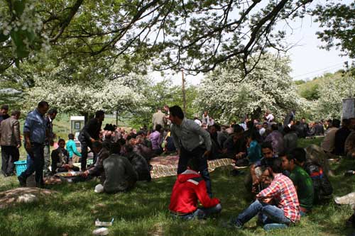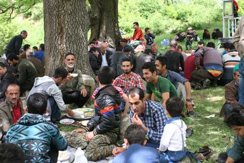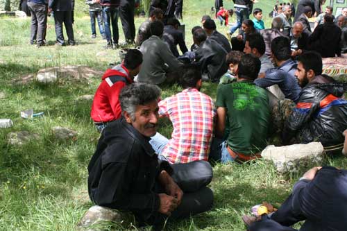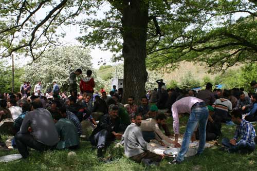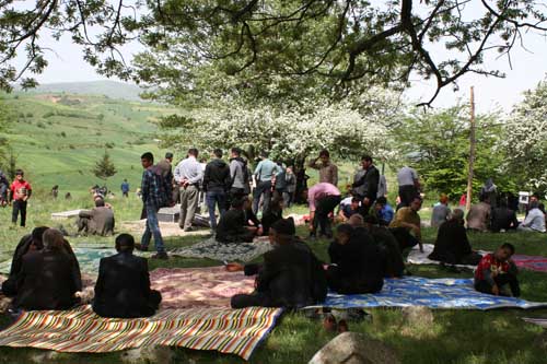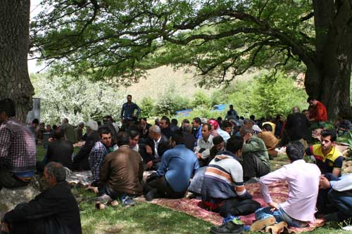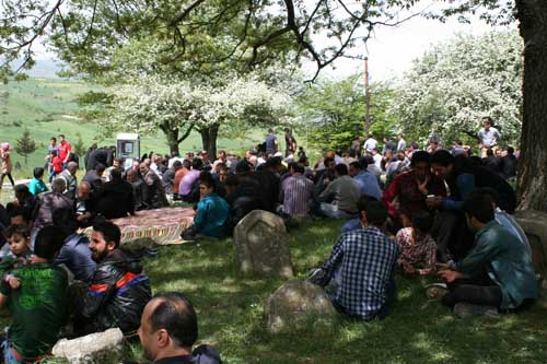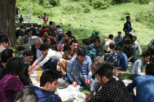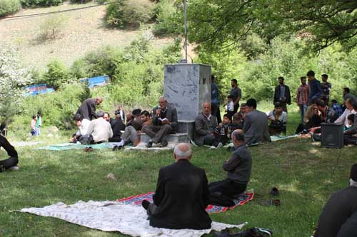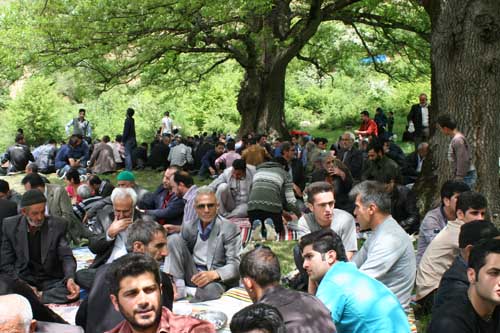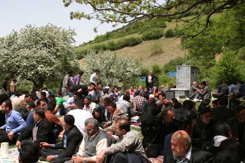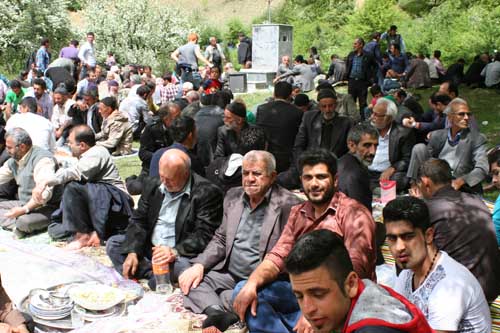مردم روستا پیرو جوان زن و مرد و کودک و نوجوان در مزار این روستا جمع شدند و با شور و شوق خاص این مراسم را برگزار و برای مردگان خود خیرات کردند .
