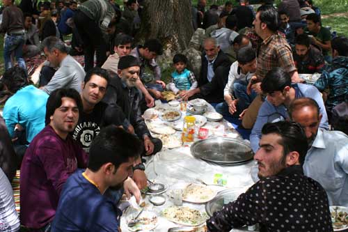 مردم روستا با پخت آش و انواع حلوا و شیرینی و شکلات و شربت از مهمانان پذیرائی کردند حضور مهمانان از روستا های اطراف ، شهرستان این جشن و آئین ایرانی را زیباتر و پر رونق تر کرده بود.