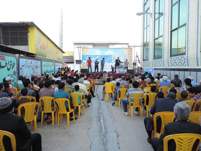 اين مراسم جشن با هنرمندي هنرمندان صداو سيما، اجراي مسابقات ،و نيز مولودي خواني همراه بود