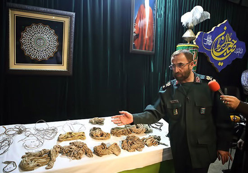 پیکر مطهر یکی از شهدای غواص و خط شکن دست بسته نیز در محل نشست خبری در معرض دید خبرنگاران قرار گرفت.