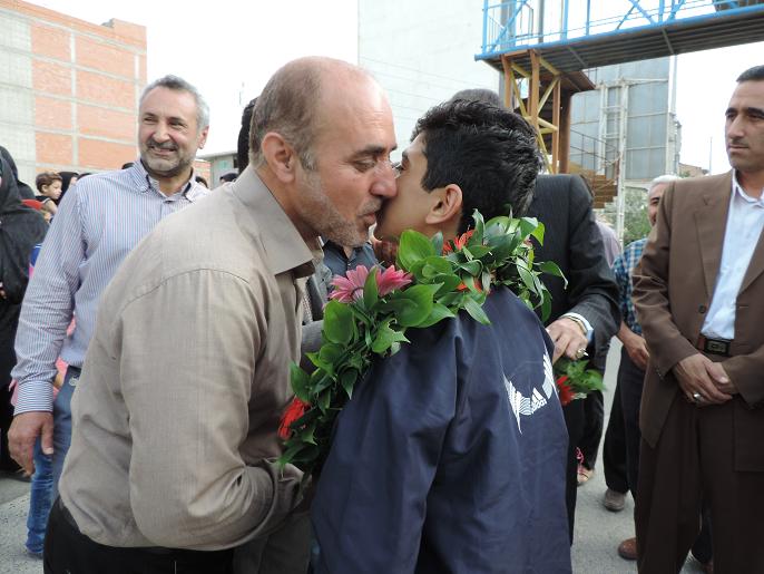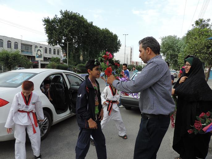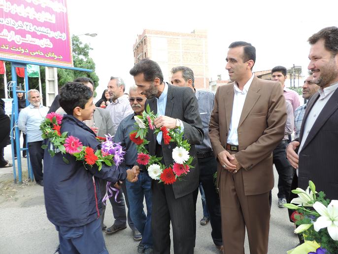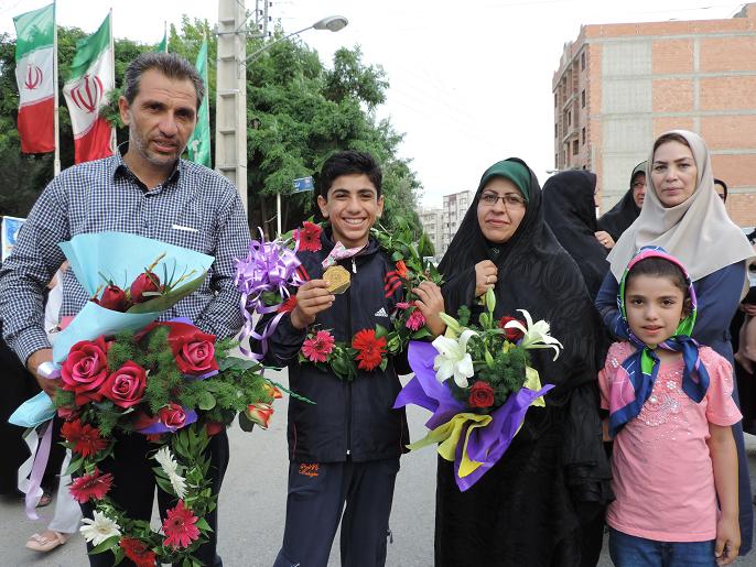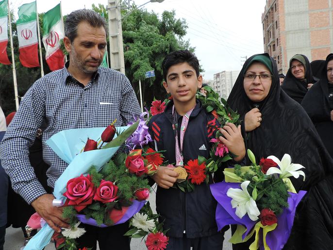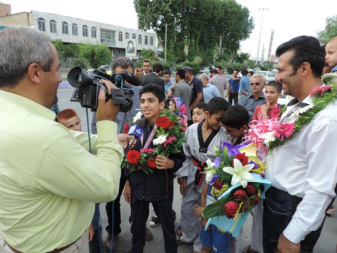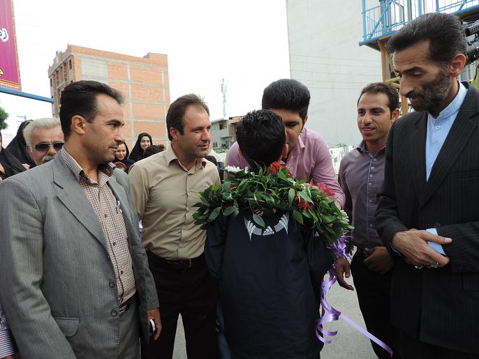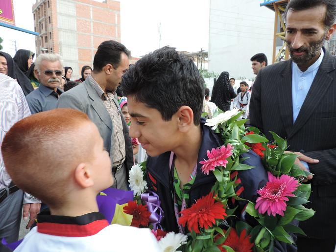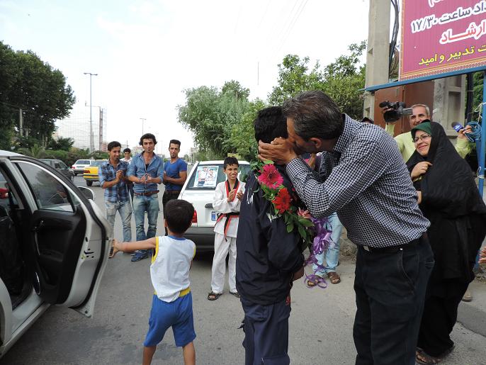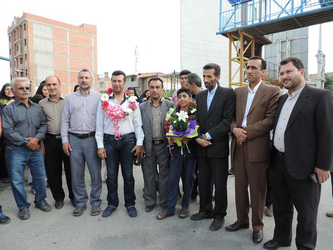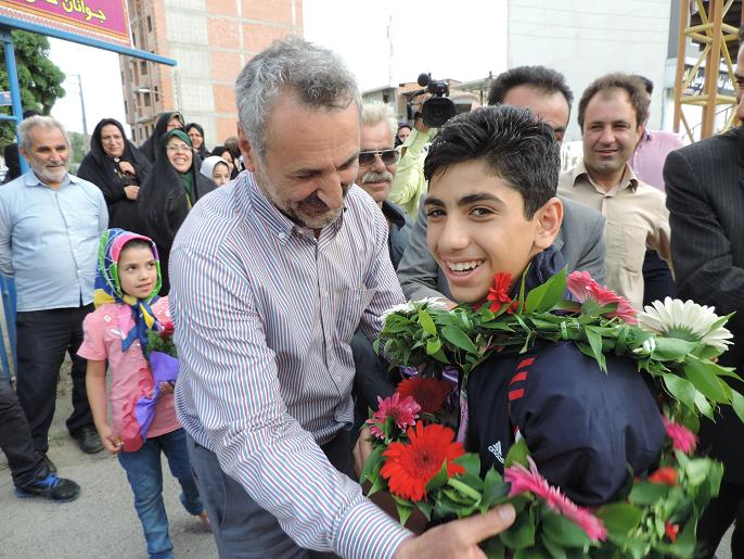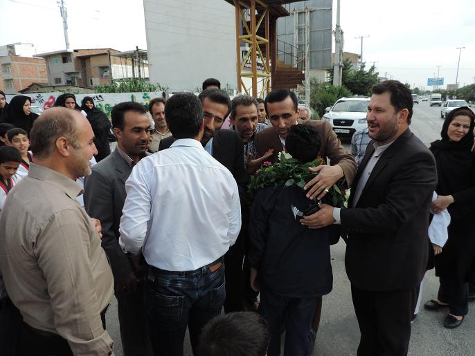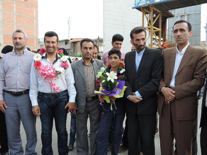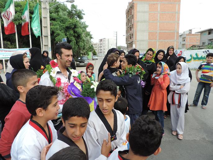 استقبال مردم نكا ازعلي قويدل بهزادكلايي قهرمان تكواندو كشور/عكس