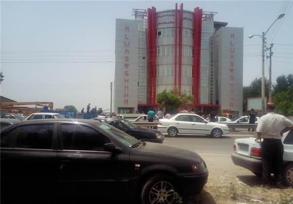 تجمع شهروندان و خریداران مغازههای مجتمع تجاری الماس شهر روبهروی این مجتمع باعث ترافیک نیمهسنگینی در این جاده شد.