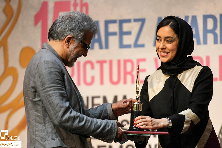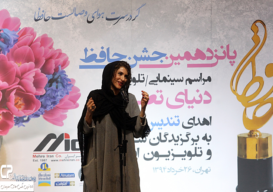 پانزدهمین مراسم جشن حافظ شب گذشته به حضور پر رنگ بازیگران سینما و تلویزیون در تالار وزارت کشور برگزار شد .