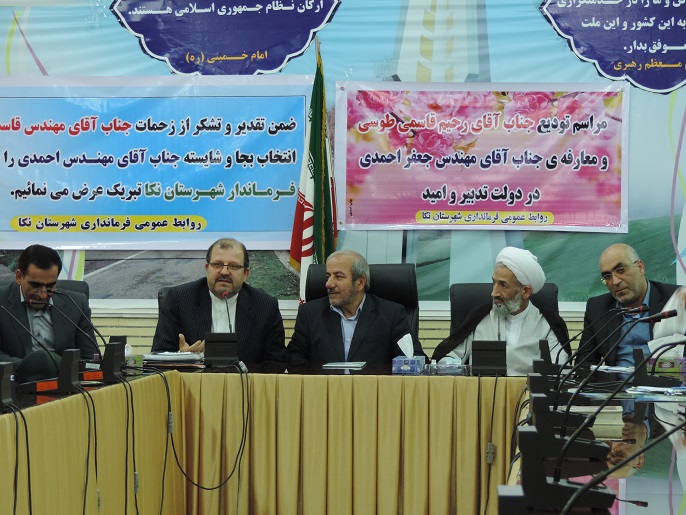مراسم معارفه جعفر احمدی و تودیع رحیم قاسمی عصر امروز ساعت ۱۷ با حضور آيت الله محمدي لائيني امام جمعه نكا ، علیرضا یونسی معاون سیاسی امنیتی استاندار دكتر پارسا معاون برنامه ريزي استانداري مازندران برگزار شد