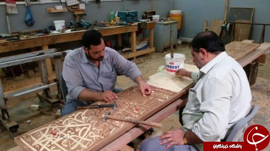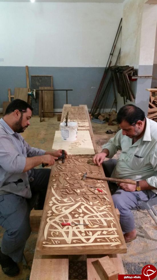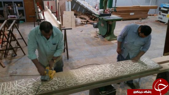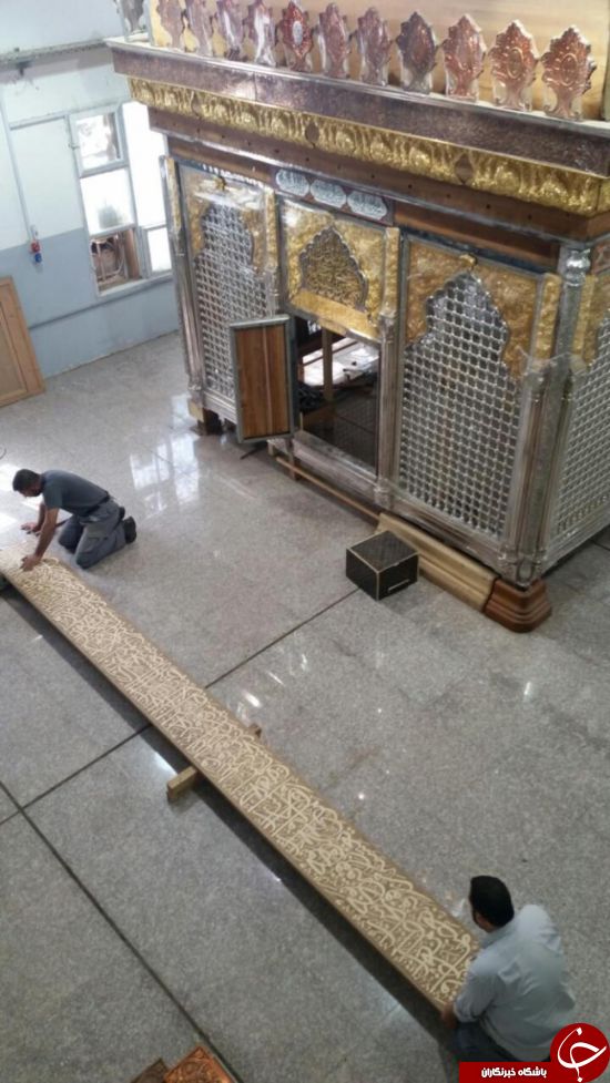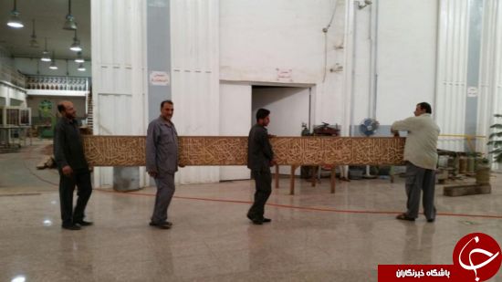 ساخت و نصب کتیبه قرآنی داخل ضریح جدید حضرت عباس(ع) + تصاویر