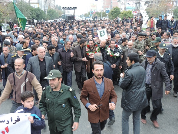 در خیابان علمیه تندتر شد، جمعیت که به یادمان رسید، دیگر دل در دل خانواده شهید نبود جالبتر اینکه مردم نکا نیز گویا برای نخستینبار است بر مزار شهدای گمنام میآمدند، تا حدیکه آشنایان شهید بهدلیل ازدحام جمعیت بهسختی توانستند وارد یادمان شهدا شوند و برخیها صبر کردند تا اندکی اوضاع آرامتر شود.