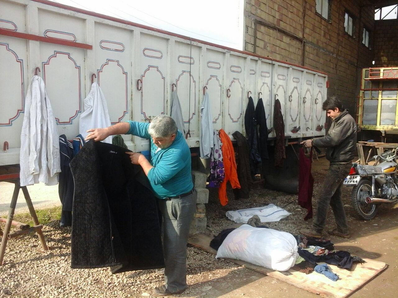 شاگرد های حاجی لباسی های خاص رادر حال تفکیک هستند.