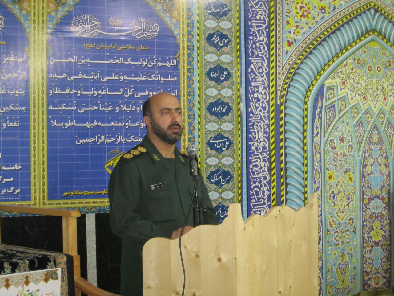 فرمانده سپاه ناحيه نوشهر در جمع بسيجيان گفت:امروزروزحساسی است روز بیعت با انقلاب اسلامی که همان بیعت با رسول الله است چون انقلاب ما ادامه راه انبیاء الهی است پس باید به کسانی رای بدهید راه امام را قبول داشته و انقلابی و متدین باشند راه و اصول و مبانی امام را قبول داشته و در عمل ولایت فقیه را قبول داشته باشند.
