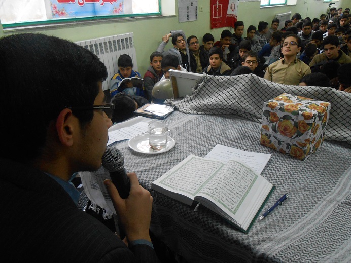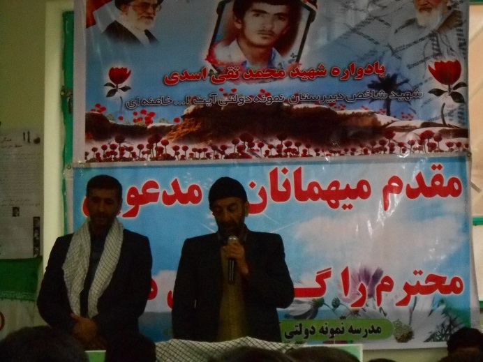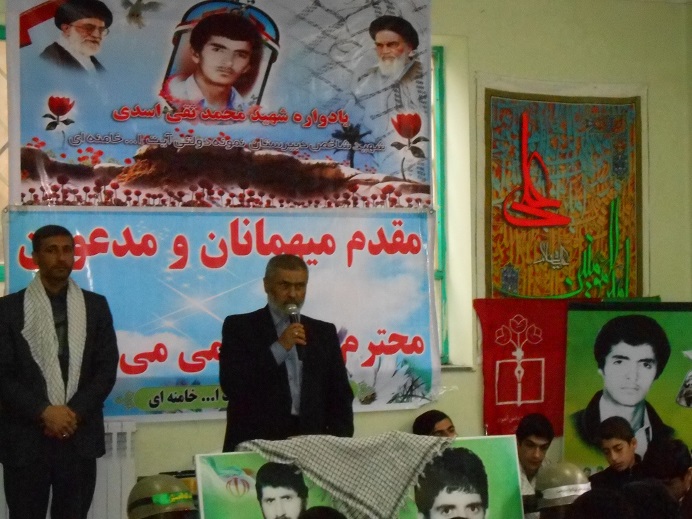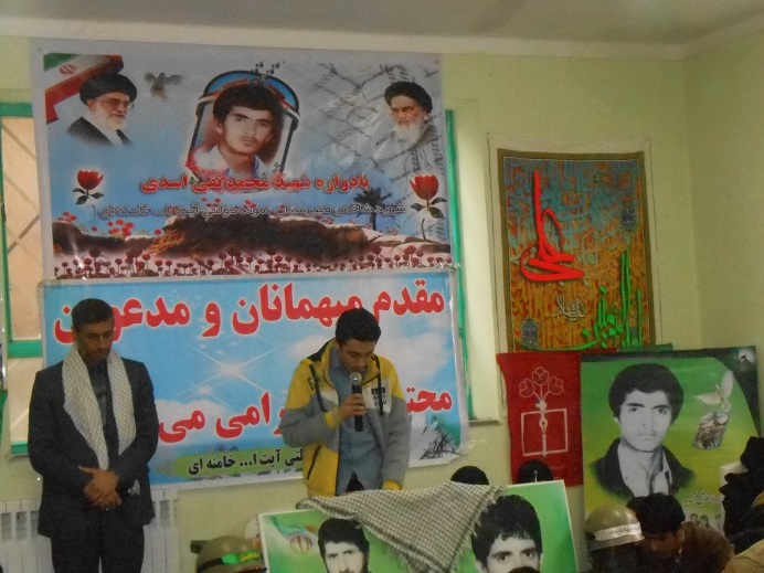 در این محفل نورانی اجرای تلاوت قرآن کریم ، زیارت عاشورا ، سرود ملی، مداحی ، خیر مقدم مدیر مدرسه ،نقل خاطره از برادر شهید محمد تقی اسدی ،قرائت وصیت نامه شهید و خاطره گویی سرهنگ ذلیکانی از یادگاران دفاع مقدس و تولیت آستانه مقدسه شهدای گمنام نکا همراه بود .