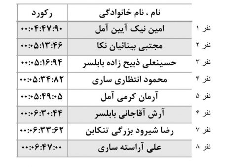 شایان ذکر است : دومین دوره مسابقات کراس فیت قهرمانی استان مازندران با حضور ۷ تیم شرکت کننده از شهرهای مختلف در روز جمعه مورخ ۱۹ بهمن ماه ۹۷ در سالن شهید بردبار شهرستان نکا برگزار گردید که نفرات برتر آن به شرح ذیل می باشد:
