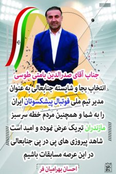 صدرالدین بامتي طوسي به عنوان مدير تيم ملي فوتبال پيشكسوتان ايران منصوب شد .