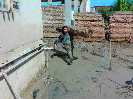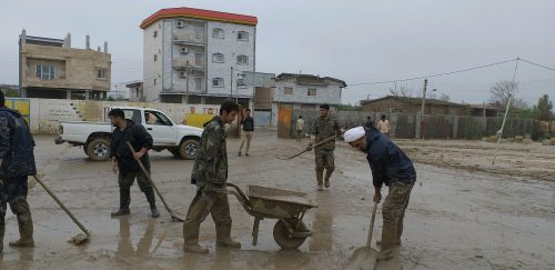 دومین مرحله امدادرسانی و اردوی جهادی جمعی از طلاب و مدیر حوزه علمیه مسجد جامع در منطقه سیل زده آق قلا