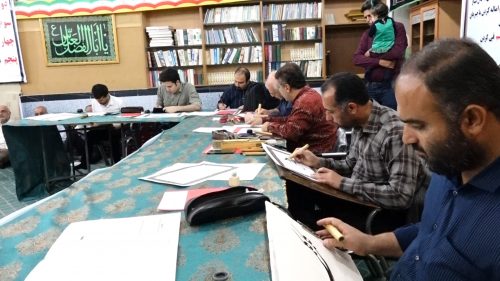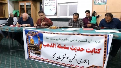 کتابت حدیث “سلسه الذهب “توسط خوشنویسان شهرستان نکا/ عکس +ویدئو