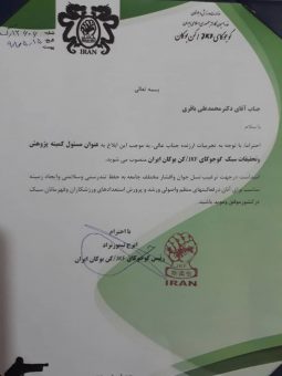 دکترباقری به سمت مسول کمیته پژوهش وتحقیقات سبک گوجوکای jkfکن بوکان کشورمنصوب شد/تصویر