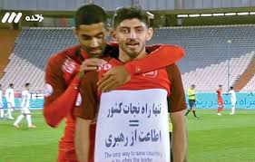 به گزارش نیکا خبر ،مهدی ترابی،هافبک تهاجمی پرسپولیس پس از گل زدن به پیکان، شادی پس از گل خود را با نمایش نوشته کوتاه و گویای روی پیراهنش نشان داد که در آن بر اطاعت از رهبری بهعنوان تنها راه نجات کشور تأکید کرده بود.