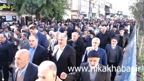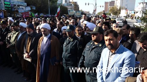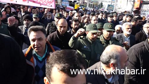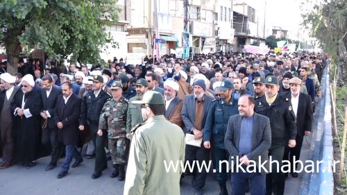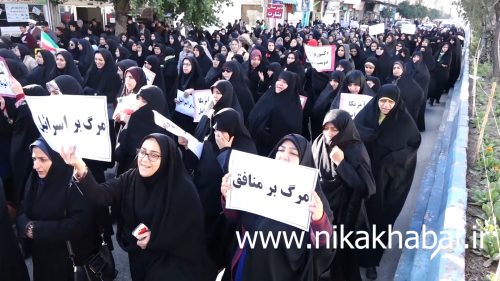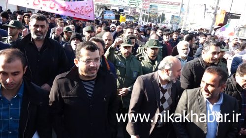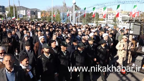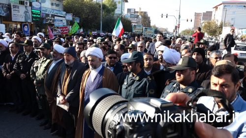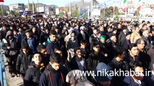 در پی فرمایشات حکیمانه مقام عظمی ولایت مبنی بر محکوم نمودن توطئه ونیرنگ دشمنان داخلی که بر گرفته از خدعه استکبار جهانی و اذناب آنان منجر به اقدامات خرابکارانه در کشور شده اند و دست به ایجاد اغتشاش زده و سبب کدورت مردم شده اند با هدف محکوم نمودن این حرکت وقیحانه دشمنان و منافقین ، مردم ولایت مدار و با بصیرت شهرستان نکا همپای دیگر هوطنان مان با بر پایی راهپیمایی با شکو ه بار دیگر ضمن اطاعت از فرمان ولی امر مسلمینن جنایات و اغتشاشات اخیر بشدت محکوم و خواستار برخورد جدی دستگاه قضا با عوامل آشوب در کشورشدند .