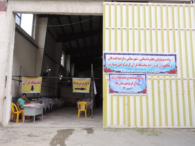 ریس اداره فرهنگ ارشاد اسلامی شهرستان نکا درحاشیه بازگشایی نمایشگاه قرانی در سالن اجتماعات ایت الله خامنه ایی این شهرستان در گفتگو با خبرنگار واحد مرکزی خبر خاطر نشان کرد:در ماه مبارک رمضان امسال نمایشگاه قرانی و محصولات فرهنگي در ده غرفه با همکاری نهادهای مردمی و دستگاههای دولتی همانند سازمان فنی حرفه ایی سپاه آموزش وپرورش کتابخانه عمومی موسسات قرآنی همانند منهاج مهر تاپایان ماه مبارک همه روزه ازساعت ۹صبح تا۱۱شب به روی علاقمندان دایر میباشد.
