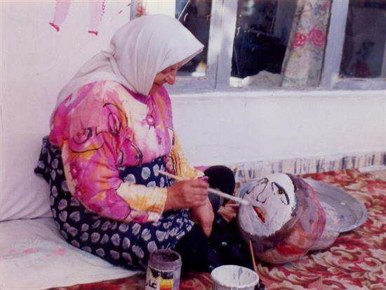 اولین کارش را که پرترهای از یک گاو بود، با گل و خاک روی سنگ نقاشی کرد. سپس تمام دیوارهای خانه، درها، کدوهای حلوایی و هر آنچه را میتوانست به عنوان بوم نقاشی عمل کند، انباشته از طرح و رنگ کرد تا اینکه یکی از پسرانش در یکی از سفرهای ماهانه برای ملاقات مادر، از تهران برایش رنگ و کاغذ خرید.