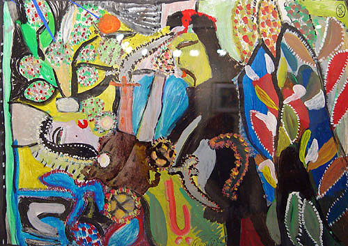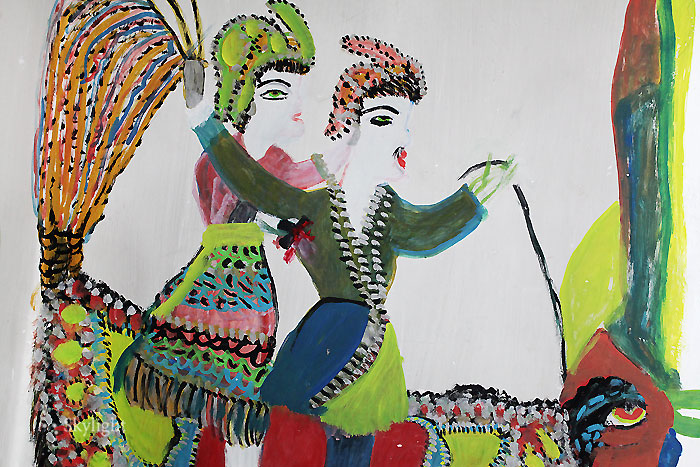 به جانی گفتم یعنی اینا که کشیدم خوبه ؟ جانی گفت آره ننا خیلی خوبه … بازم نقاشی کن … و من شروع کردم به نقاشی … شصت و هفت سالم بود که شروع کردم به نقاشی … بعضی روزها که می شِستم و نقاشی می کردم، همسایه ها سرزده می اومدن توو و می گفتن چیکار میکنی مش مکرم زده به سرت ؟… می گفتن نقاشی چه به کار کشاورز جماعت می آد ؟ … پیرزن بیچاره … اینها چیزهایی بود که می گفتن … منم خجالت می کشیدم … از اون به بعد هر وقت کسی می اومد کاغذها و نقاشی هامو می انداختم زیر فرش و دست های رنگیَم رو پشتم قایم می کردم … بعد از اون، فقط شب ها نقاشی کردم … روز نمی تونستم نقاشی کنم، نگران درُ همسایه بودم … شب ها مثله بچه هایی که دراز می کشنُ مشق می نویسن، دراز می کشیدمُ نقاشی می کردم. همه ی قصه ها و داستانهایی که پدرم گفته بود و یا خودم شنیده بودم رو نقاشی می کردم. ماجرای لیلیُ مجنون، امیرُ گوهر، رعنا و نجما، حیدربیکُ سنمبر، مسیح، امام رضا، داستان نوح، موسی، باباطاهر، دیو و فرشته … حتی ممدآقا، سگ، گراز، گرگ …