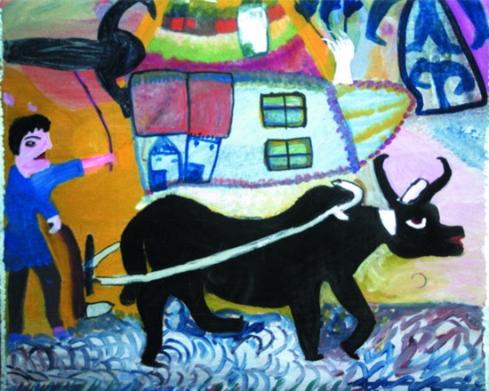جانی رفته بود تهران توو دانشگاه نقاشی می کرد. گاهی می اومد به من سر می زد … یه روز اومد سرگاو رو دید … نگاش که کرد گفت ننا می خوای نقاشی کنی؟ … من داشتم ظرف می شستم …. چیزی نگفتم … گفت می خوای برم برات کاغذ بخرم … گفتم نه نمی خواد بخری … پشت بوم کاغذ پاره هست، رو همونا نقاشی می کنم … جانی گفت باشه و رفت بیرون … وقتی برگشت دیدم کلی کاغذ سفید خریده با دوتا قلمو و یه بسته رنگ … چیزی نگفتم. گذاشت رو ایوانُ رفت تهران … جانی که رفت شروع کردم به نقاشی … توو دو شب همه ی کاغذ هارو پشتُ رو نقاشی کردم … همه چیز کشیدم … گاو، سگ، مرد، زن، خروس … رنگام زود تموم شد … خودم رفتم رنگ ساختم … برای رنگ قرمز، تمشک جمع می کردم … آبش قرمز خوش رنگی می شد … از پوست گردو هم استفاده کردم، از انار، از برگ های آقطی یا همون انگور کولی ها که توو حاشیه ی جنگل در می آد.