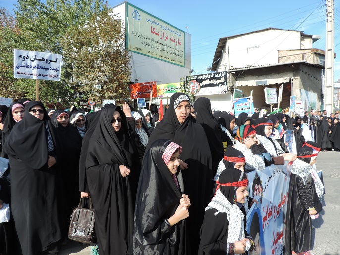 دراین همایش که برمحور شعار هیات منا ذله آموزگار مکتب عشق امام حسین نشات گرفته فریاد مرگ بر آمریکا و مرگ بر اسراییل و لبیک یا خامنه ایی لبیک یا حسین دراین شهر طنین انداز شد.