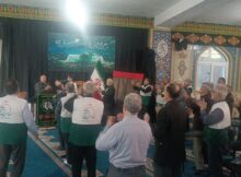 در ظهر روز جاری و همزمان با ایام سوگواری شهادت حضرت فاطمه زهرا(س)، جمعی از نمازگزاران و خادمیاران رضوی با حضور در مسجد بقیةاللهالعظم ساری، آیین عزاداری و
