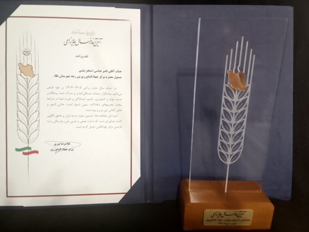 انتخاب ناصر عباسی استخرپشتی، مسئول مرکز جهاد کشاورزی پی رجه نکا به عنوان مسئول نمونه کشوری؛ افتخاری بزرگ برای دیار نیکان