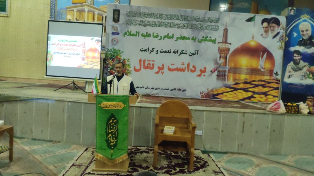 نخستین آیین «شکرانه نعمت و کرامت برداشت پرتقال» با هدف پیشکش محصول به آستان مقدس امام رضا علیهالسلام، همزمان با میلاد امام محمد باقر(ع) در قائمشهر برگزار شد.