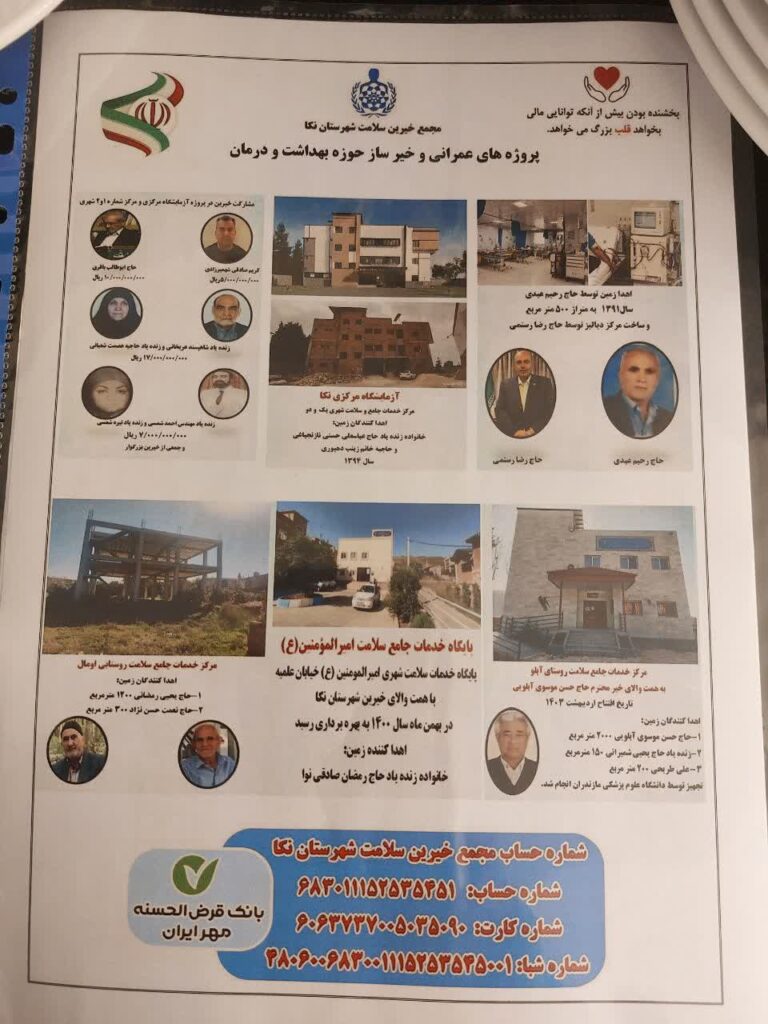 جمعی از خیّرین سلامت استان مازندران و شهرستان نکا گردهم آمدند تا با تعهد ۲۰ میلیارد تومانی خود، بخشی از مشکلات حوزه بهداشت و درمان این شهرستان را حل کنند. این خیّرین متعهد شدند که به تکمیل و تجهیز پروژههای نیمهکاره در حوزه بهداشت و درمان شهرستان نکا کمک کنند.